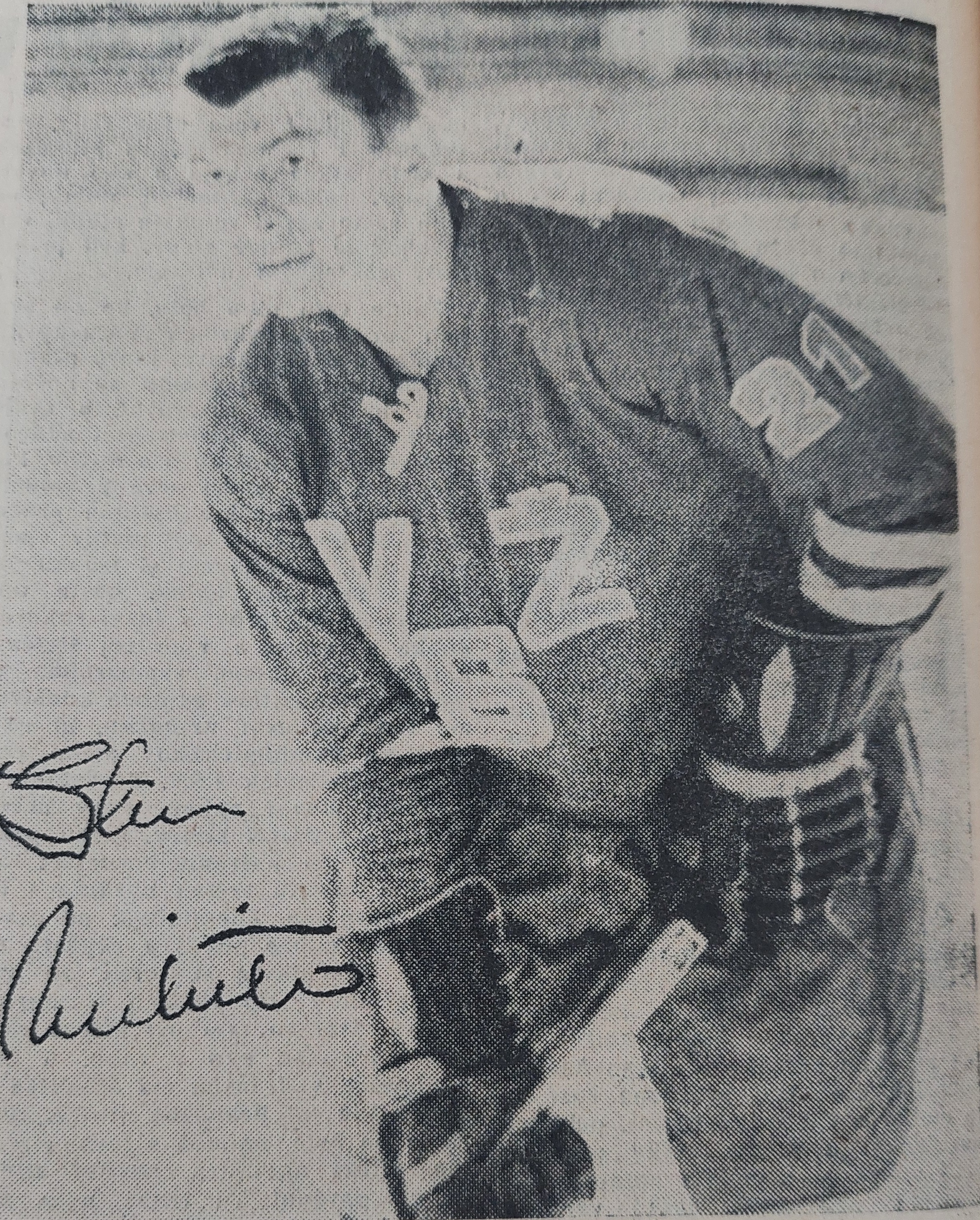 V kinosále nášho učilišťa privítali v utorok vzácnu návštevu. V sprievode podnikového riaditeľa, predsedu PV KSS, PV CSM, vedúceho učilišťa, trénera hokejového mužstva, Štembroka, pdpl. Kovala a mnohých ďalších hostí, prišiel medzi učňov najlepší hokejista sveta v minuloročnej sezóne, náš krajan Stan Mikita.