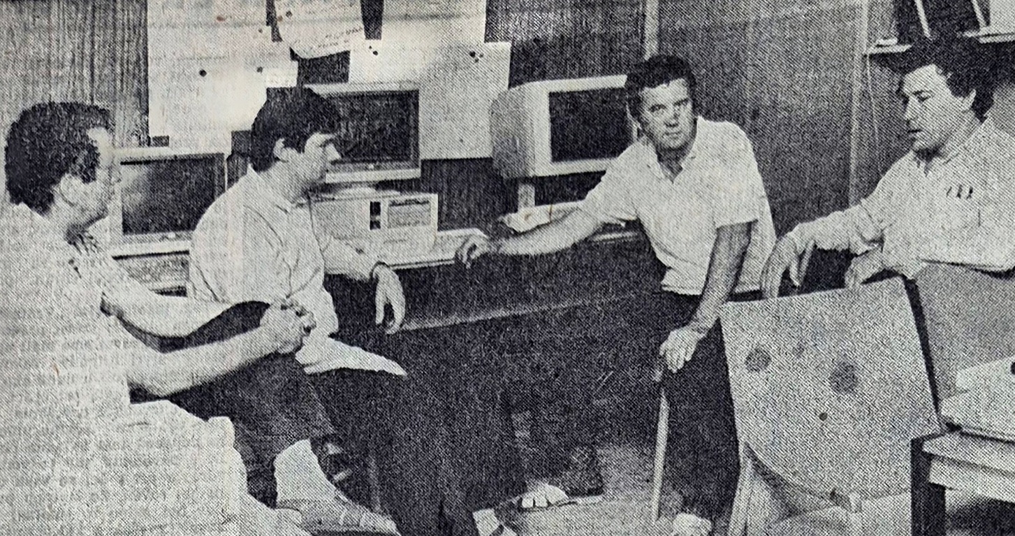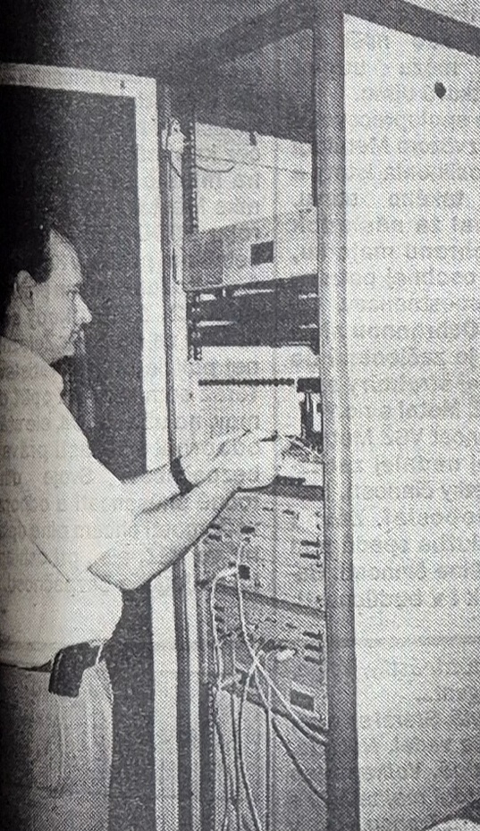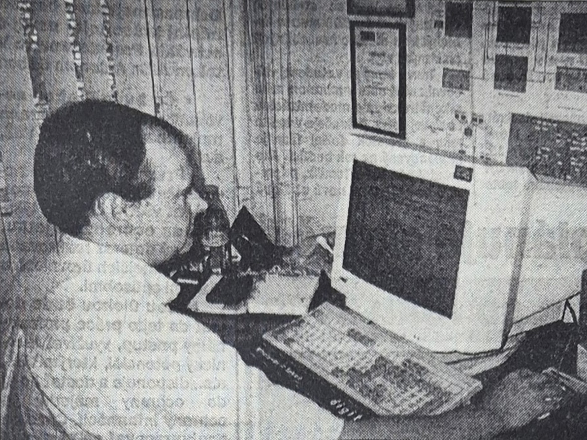 Na titulnej fotografii Ján Venglarčík, ktorý mal na starosti hlavný rozvádzač komunikačného centra. Na fotografii práve sťahuje zo servera VSŽ jednu z našich web stránok.