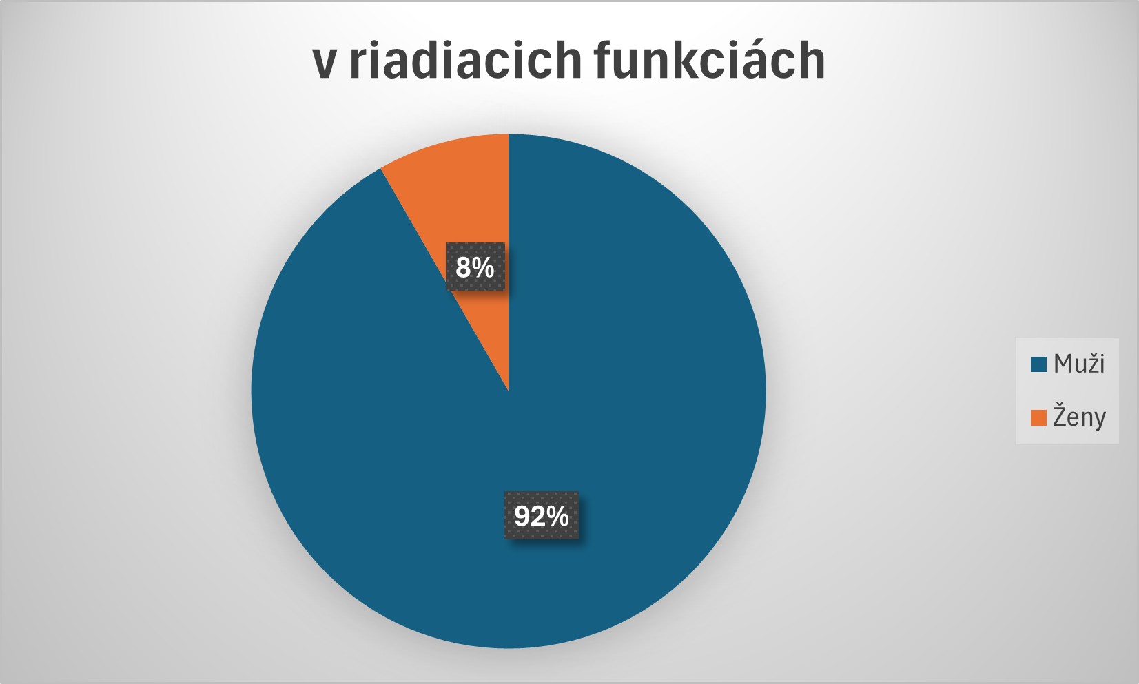 V riadiacich funkciách je z celkového počtu manažérov viac ako 8 percent žien. Máme tri viceprezidentky, štyri generálne manažérky, 26 riaditeliek, jednu výkonnú manažérku. Na pozícii vedúcej oddelenia pracuje 16 žien a 11 žien môžeme stretnúť vo výrobe na pozíciách majsteriek. Priemerný vek žien v našom podniku je 53 rokov a priemerný počet odpracovaných rokov je 30 (u mužov je to 24).