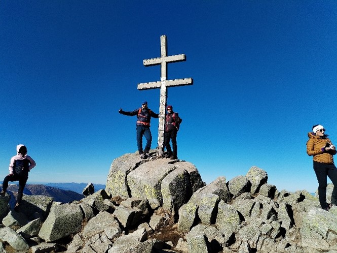 Zaparkovali sme na parkovisku Trangoška a vydali sa na Chopok po žltej turistickej značke. Našu cestu sprevádzal krásny západ mesiaca za kopce a ešte krajší východ slnka. Po príchode na Chopok nás privítal chladný vietor, ale nevadilo nám to, lebo slniečko hrialo a boli sme dobre oblečení. Po krátkej pauze na fotenie sme sa vydali po hrebeni smerom na Ďumbier, po červenej turistickej magistrále hrdinov SNP. Cestou sme stretávali turistov, ktorí si, podobne ako my, chceli ešte vychutnať posledné slnečné dni v horách.