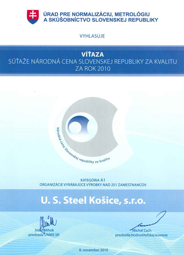 Spoločnosť získala v marci 2013 medzinárodný certifikát systému energetického manažérstva podľa normy EN ISO 50001, s platnosťou pre celú organizáciu. Tým sa stala jedným z lídrov v energetickom manažérstve v rámci oceliarenských spoločnosti v Európe.